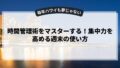 これらの手法を取り入れることで、あなたの日常生活や仕事の効率が大きく変わるかもしれません。時間管理術をマスターして、充実した時間を手に入れましょう。